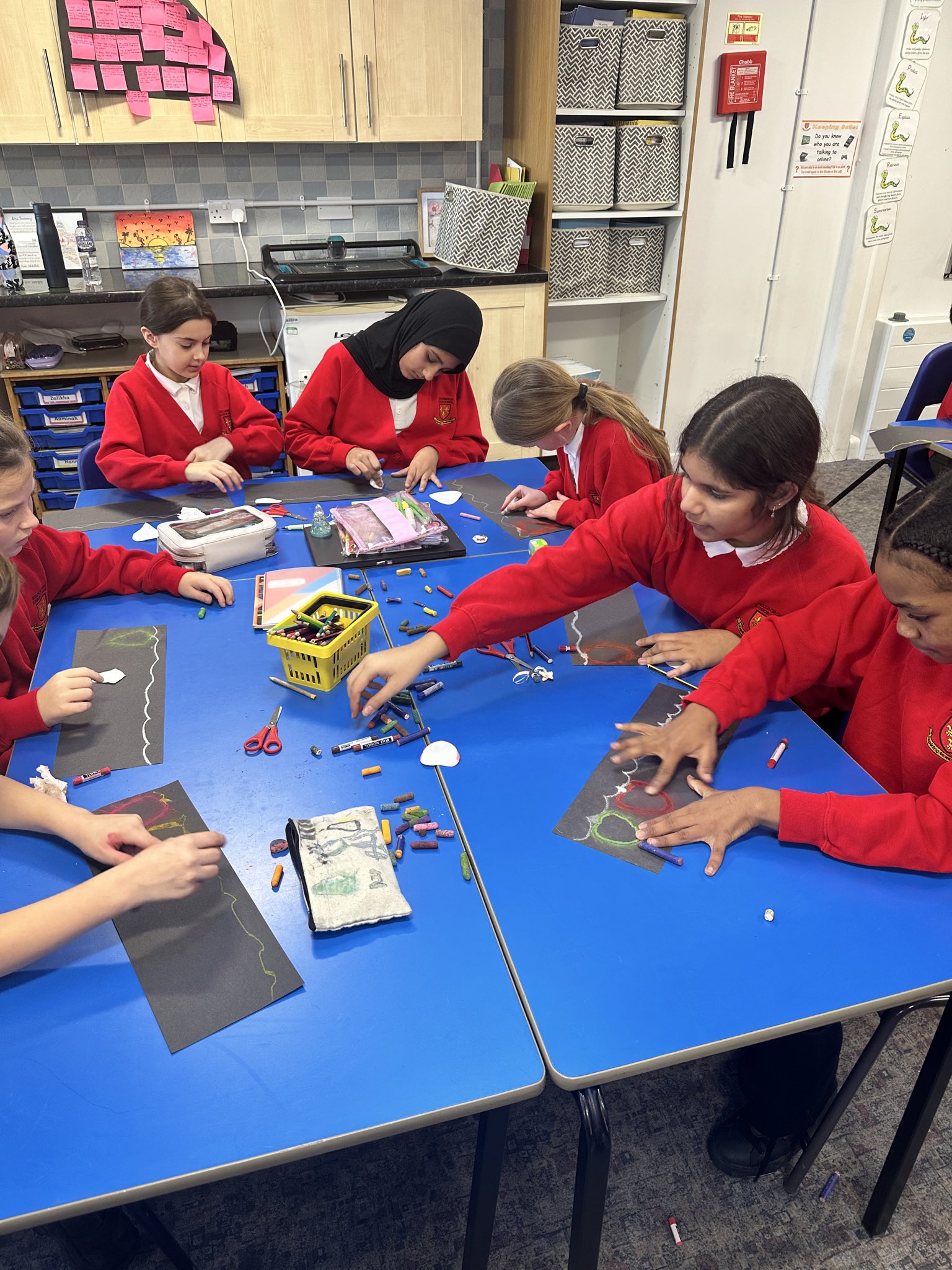 ​Things were certainly feeling merry and bright in Year 6 this morning as pupils combined chalk and glitter to create some stunning Christmas lights. The artwork will be displayed around the school to add a festive feel!
